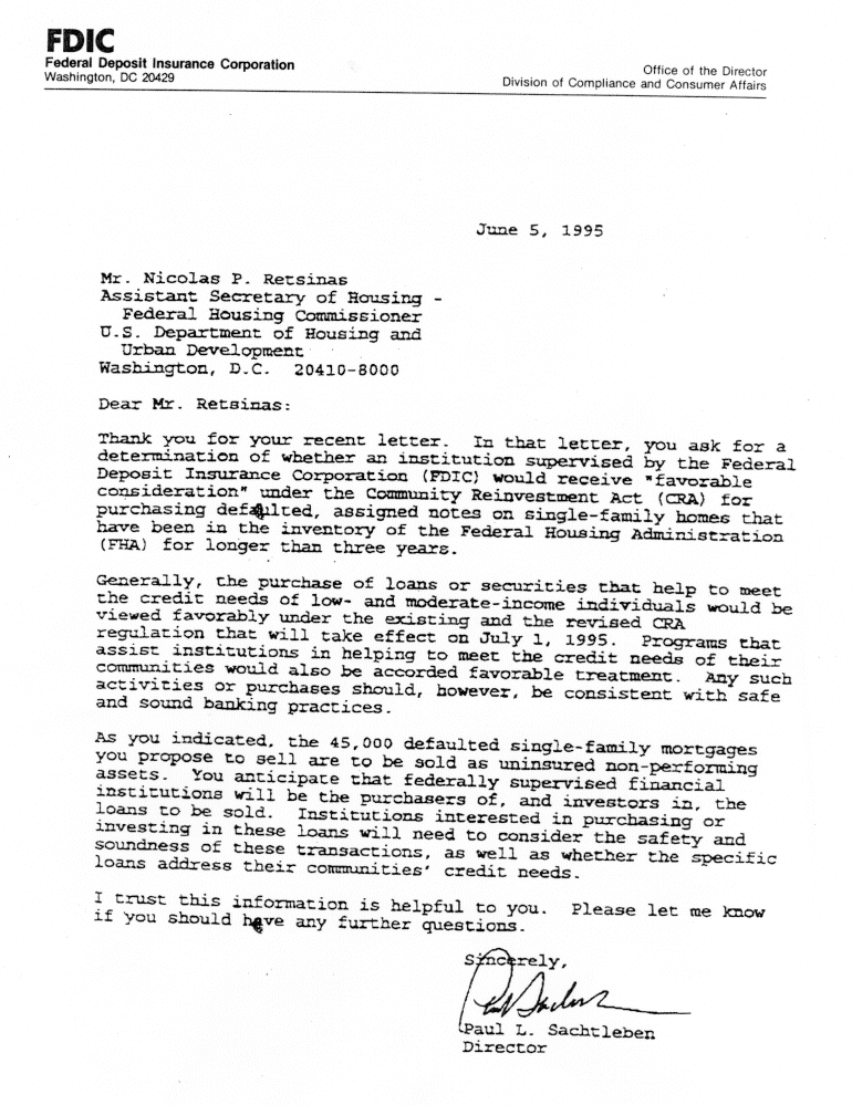 Corporation (FDIC), and the Federal Reserve. Letters from these