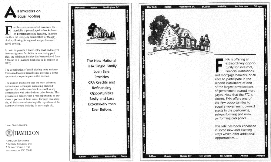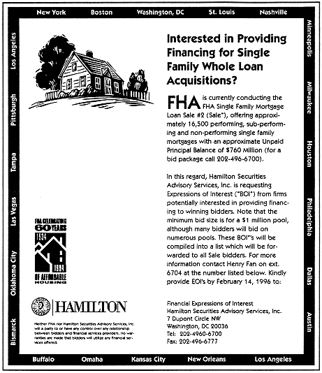 to obtain market feedback, bidders in FHA Single Family Mortgage