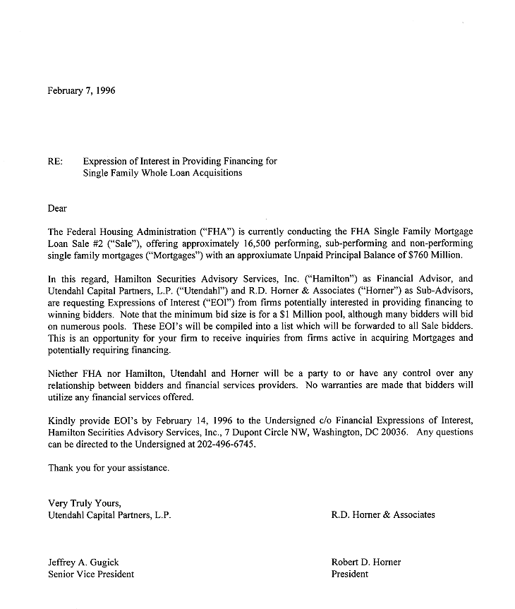 interested in providing financing to winning bidders. An advertisement